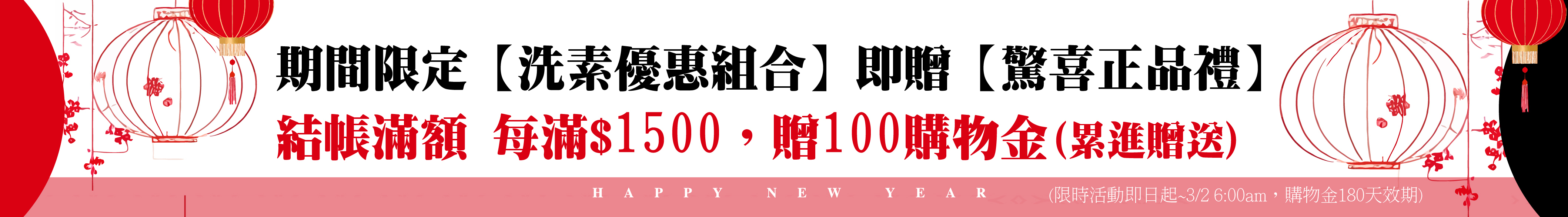 滿額每滿$1500,贈100購物金(180天效期)